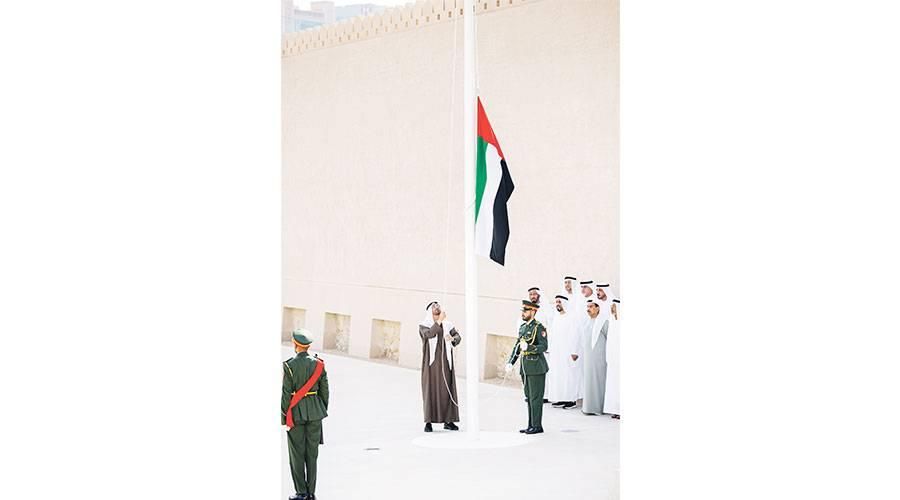 ورفع صاحب السمو الشيخ محمد بن زايد آل نهيان، رئيس الدولة، حفظه الله، علم الدولة على سارية قصر الحصن في أبوظبي، اعتزازاً بما يمثله من معاني الولاء والانتماء والفخر بالوحدة تحت رايته الشامخة، بمشاركة مجموعة من أبناء الوطن من الضباط المتقاعدين، تعبيراً عن تقدير الدولة لأبنائها الذين أسهموا في مختلف مراحل تطورها ونهضتها.