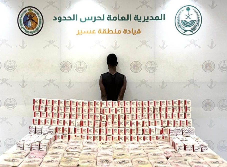 تمكنت دوريات حرس الحدود في قطاع الربوعة بمنطقة عسير من القبض على مخالف لنظام أمن الحدود من الجنسية الإثيوبية، إثر تورطه في تهريب 46 كيلوجرامًا من مادة الحشيش المخدر و60,000 قرص خاضع لتنظيم التداول الطبي.
