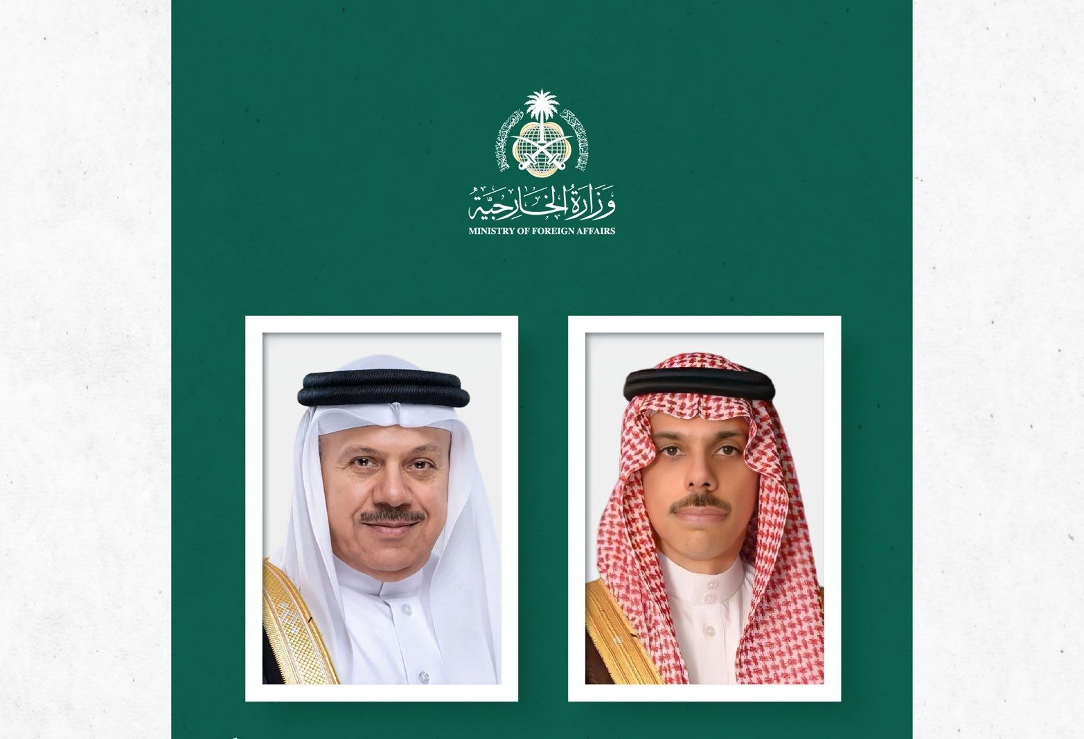 تلقى صاحب السمو الأمير فيصل بن فرحان بن عبدالله وزير الخارجية، اتصالًا هاتفيًا اليوم، من سعادة وزير خارجية مملكة البحرين الدكتور عبداللطيف بن راشد الزياني.
